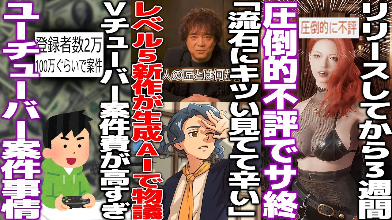 「登録者2万vtuberの案件高すぎ」ゲーム案件1発100万の異次元感覚が話題に/レベルファイブの新作発表会で明らかな生成AI疑惑発生/新作シューター圧倒的不評→3週間サ終