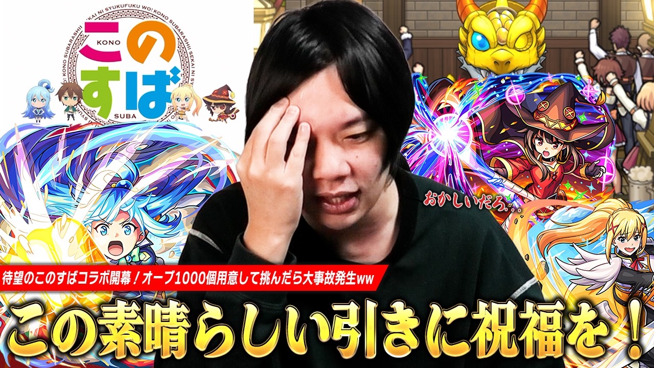【モンスト】「気合入れて引くとこうなるんだよww」待望のこのすばコラボで恐れていた大事故発生!? オーブ1000個用意して『この素晴らしい世界に祝福を!』コラボガチャ引き散らかした結果!【しろ】