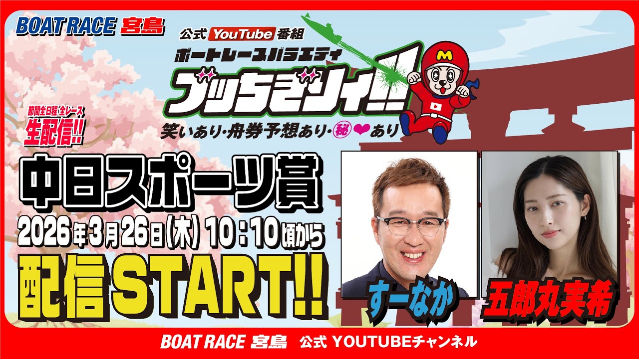 【ボートレース宮島 公式YouTube番組】 ボートレースバラエティ “ブッちぎりィ!!”【すーなか&五郎丸実希】